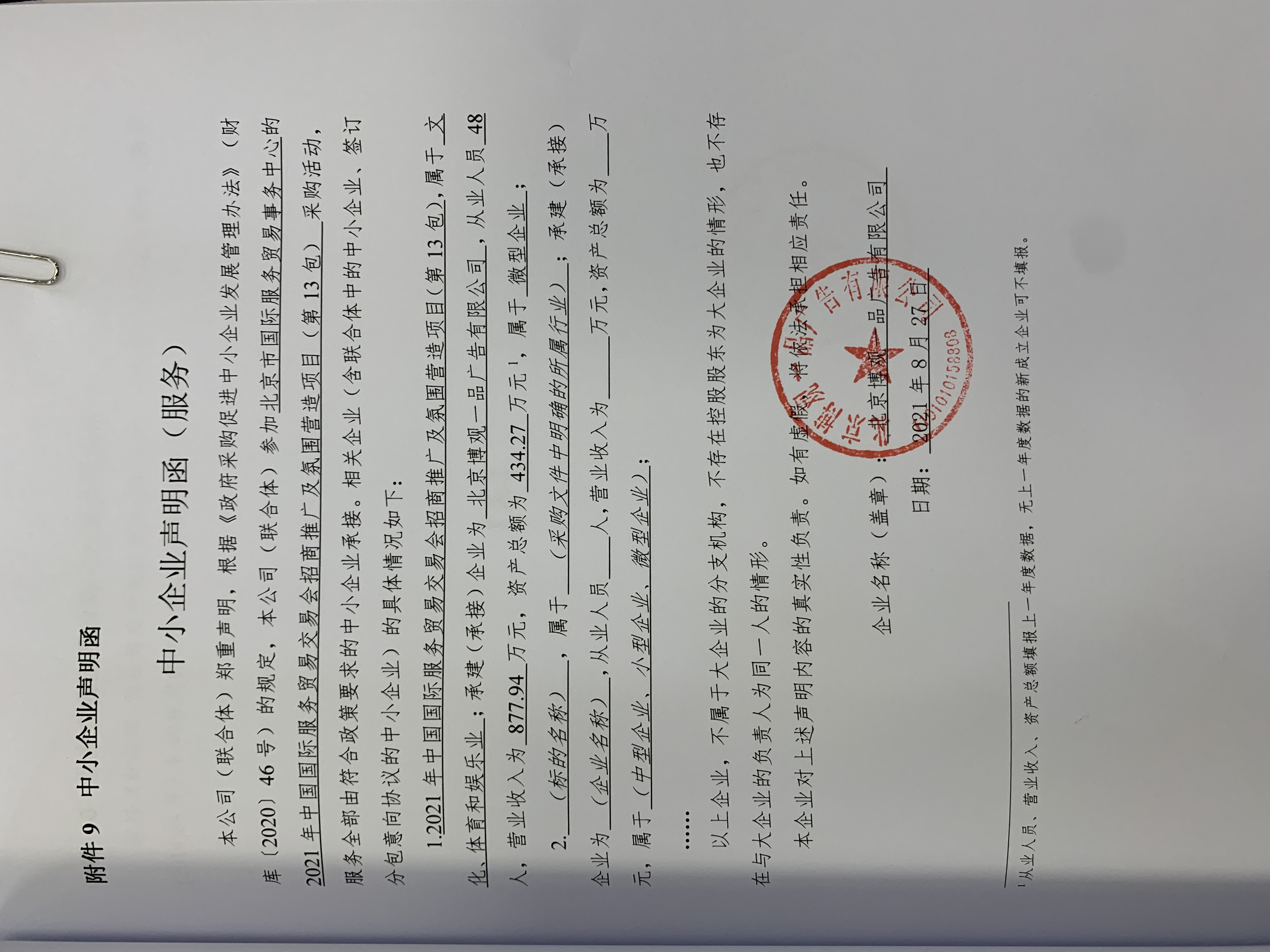 13包中小企业声明函-北京博观一品广告有限公司